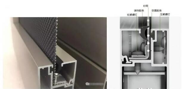金刚网采用90°折边工艺,专用的铝压块,每间隔150mm打一颗不锈钢螺钉,抗拉伸强度大大提升;金刚网两侧配有专用的防震胶条及装饰胶条,防止金刚网与铝合金产生摩擦,极大的提高了金刚网和型材的使用寿命。