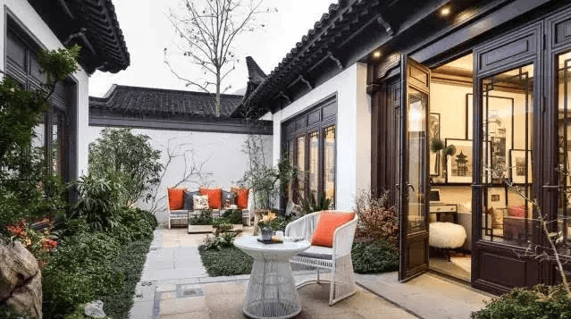 尤其是新时代中式合院初始面积都不大,所以大多都是以更节省室内面积、不惧风雨和暴晒的外开窗为主。由内开到外开,体现了营造升级。